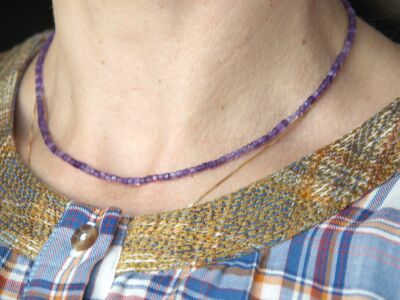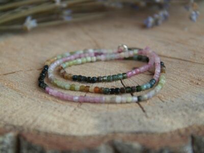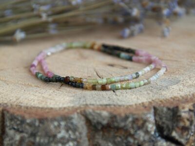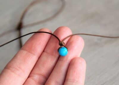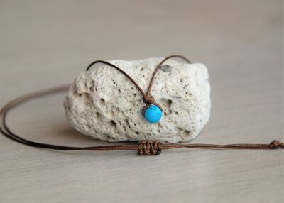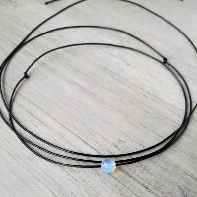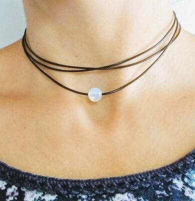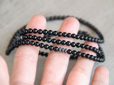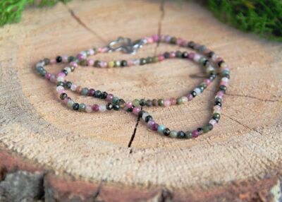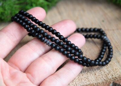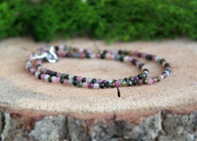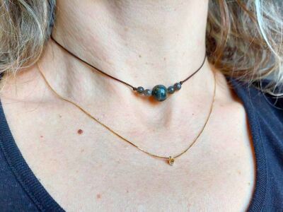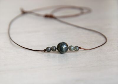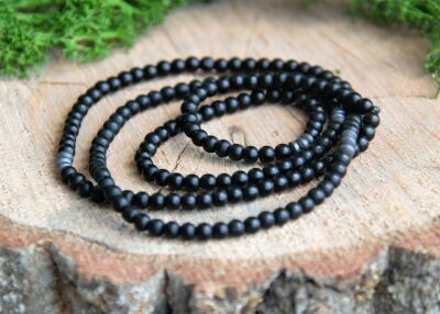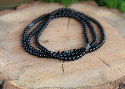 Колие, тип чоукър, с мъниста 6 мм и 4 мм черен турмалин на здрава кафява или черна (по желание) корда с два плъзгащи се възела.